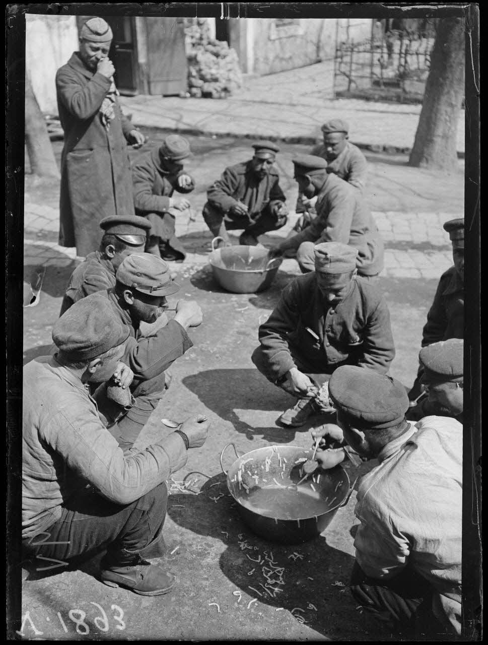 Nîmes (Gard). Le repas des prisonniers bulgares.