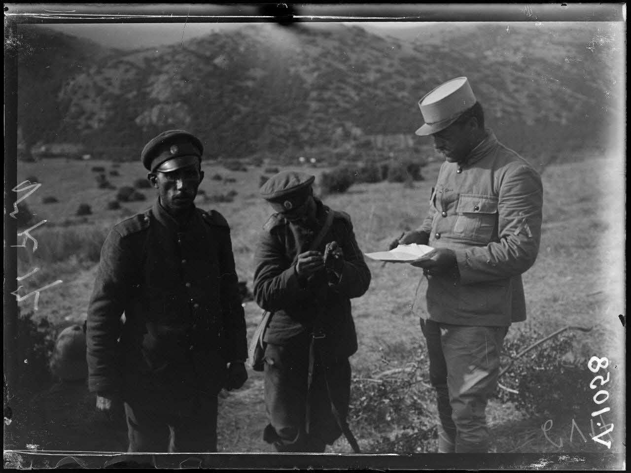 Dans les tranchées, les soldats procèdent à la relève et des prisonniers bulgares sont amenés sur le camp.