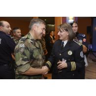 L'officier de liaison français serre la main d'un…