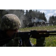 Un véhicule blindé polonais KTO Rosomak progresse…
