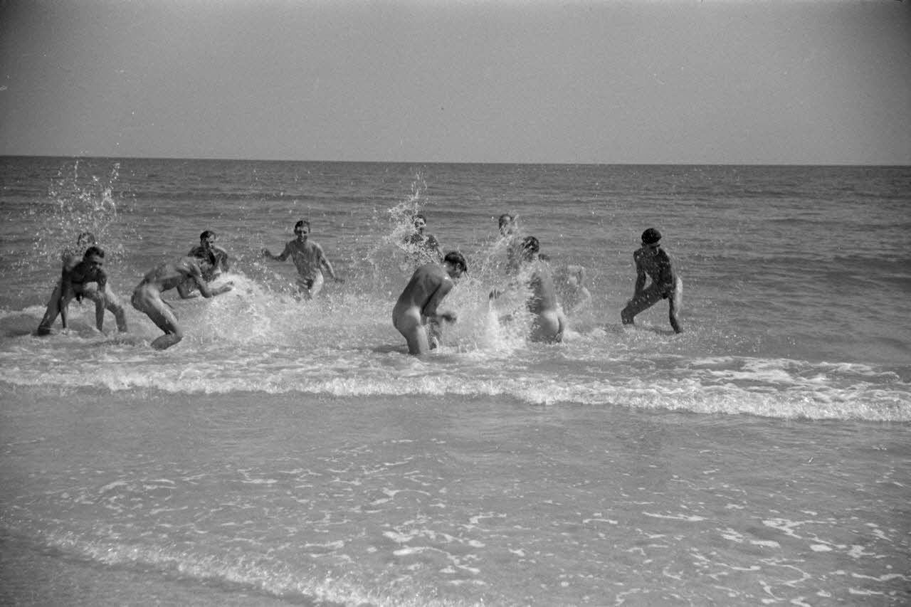 A proximité du terrain de Mamaia, des pilotes roumains du Grupul 9 sur une plage de la Mer Noire.