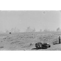 Une voiture Kübelwagen immobile, deux soldats…