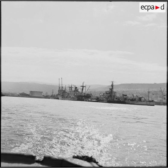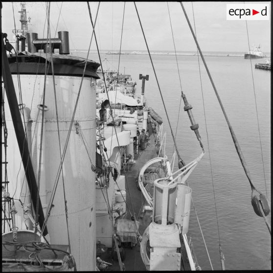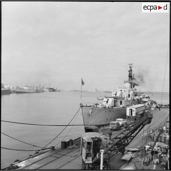 Le destroyer égyptien Ibrahim el Awal dans le port de Haïfa.