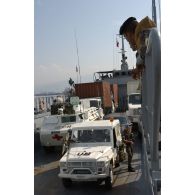 Un soldat libanais aide les démineurs du 1er…