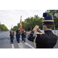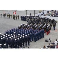 Les gardes aux drapeaux autrichienne, luxembourgeoise, suisse, les soignants du service de santé des…