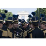 Mise en place des troupes à pied et motorisées sur le site Etoile/Champs-Elysées.