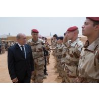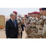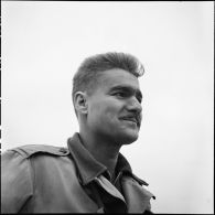 Cérémonie militaire à Ouargla. Le ministre du Sahara Max Lejeune remet des décorations.Note :…