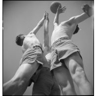 Un élève aide son camarade lors d'une crampe à…