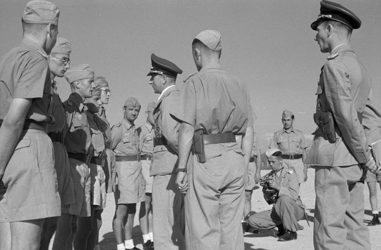 Note : Consulter les légendes du reportages conservées au Bundesarchiv de Freiburg RL 15-83C-245 (Luftwaffe KbK.7 film 1771). Consulter le reportage DAA 2500 pour retrouver la même revue du général Hoffmann von Waldau. Le reportage DAA 2500 est daté d'août 1942 mais situé par un lecteur en Cyrénaique.