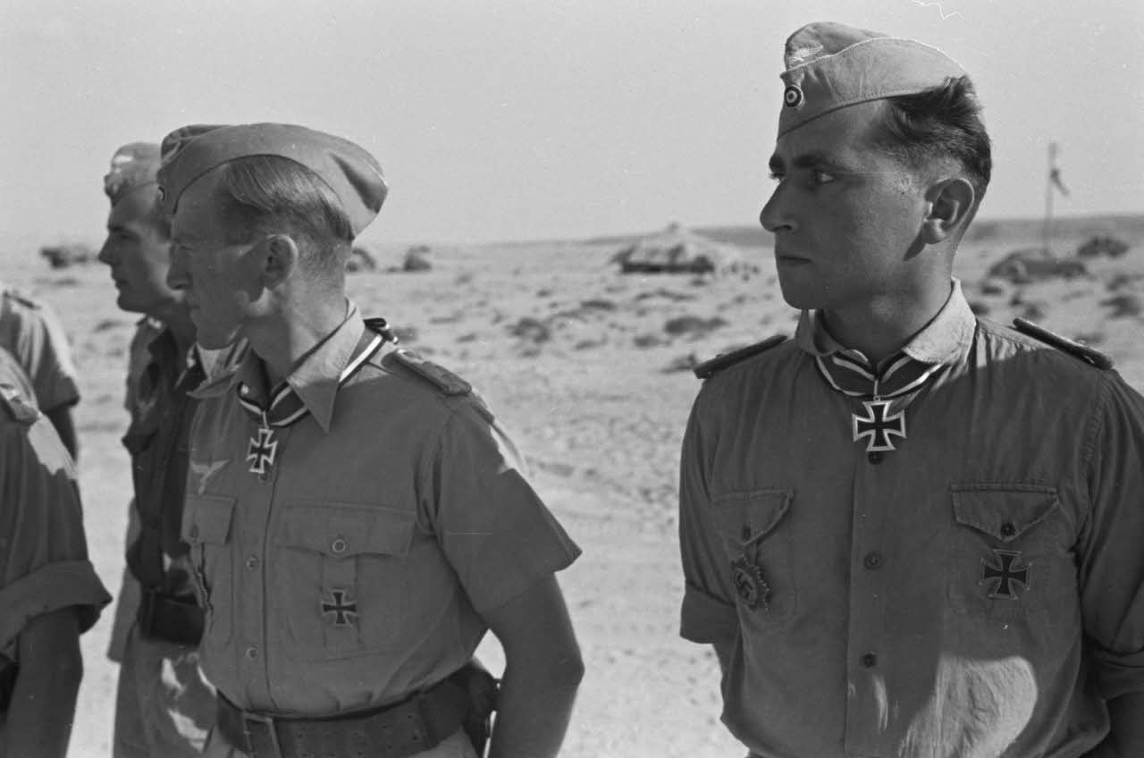 Remise de croix de chevalier de la croix de fer (Ritterkreuz) aux capitaines Mossdorf et Hamester.