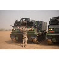 [Militaires postés derrière une mitrailleuse dans…