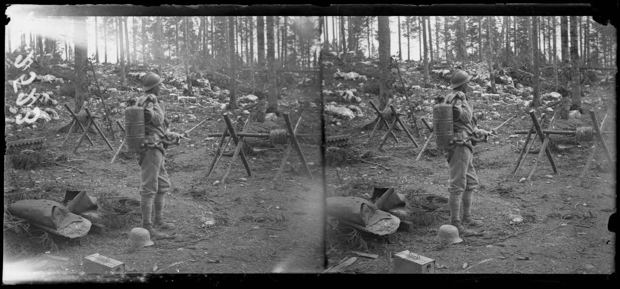 Dans le secteur de Capitello Pennar, à l’est d’Asiago, des clichés pris dans le réduit Brutus (un saillant des alliés à l’intérieur des lignes ennemies) montrent des tranchées bouleversées par l'artillerie autrichienne, un obus de 305 qui n'a pas éclaté, un lance-flamme capturé. Au sommet du saillant, un petit ex-voto en forme de chapelle est endommagé par les tirs. Un cimetière en forêt renferme des tombes de soldats autrichiens. Des abris, dont l'un est en construction, sont visibles dans les rochers, avec un poste de secours et le PC d'un bataillon. Une batterie de 75 circule sur la route, allant prendre position sur le plateau.
