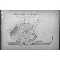 Reproduction d'un schéma représentant un lance-grenades, modèle 1916. Illustration extraite d'un…