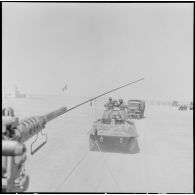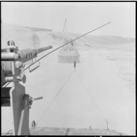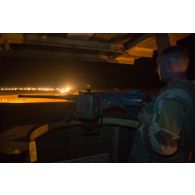 Officiers aviateurs déchargeant la mitrailleuse.…