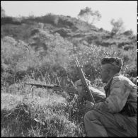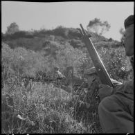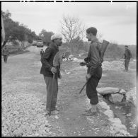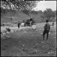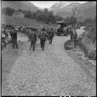 Soldats du 11e régiment du génie (RG) le long d'une route.Note : Pochette 15 "Luizent / Willeman -…