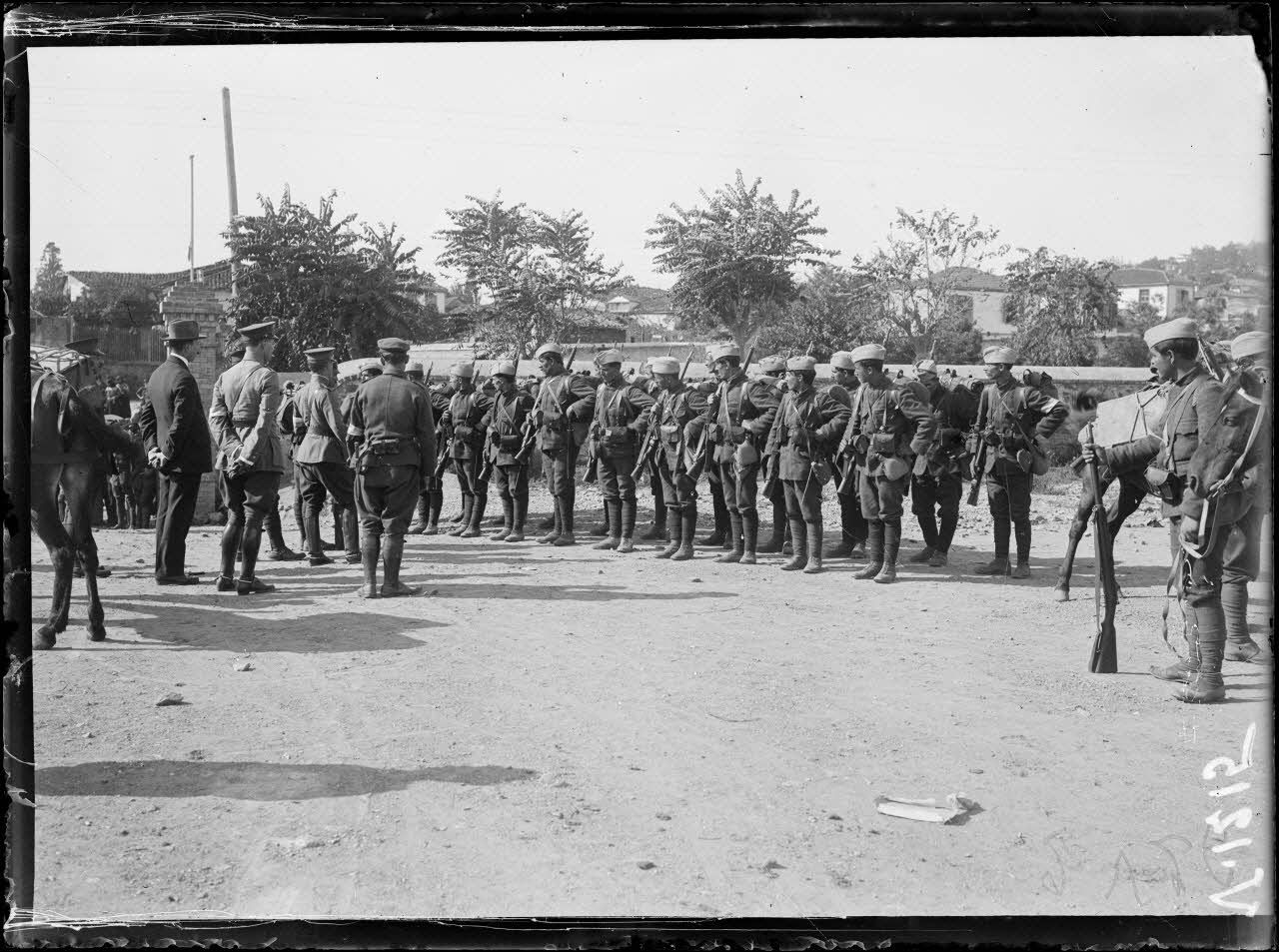 Salonique. Le général Zimbrakakis et le colonel Christodoulos passant en revue le régiment. Au premier plan, le général Christodoulos.