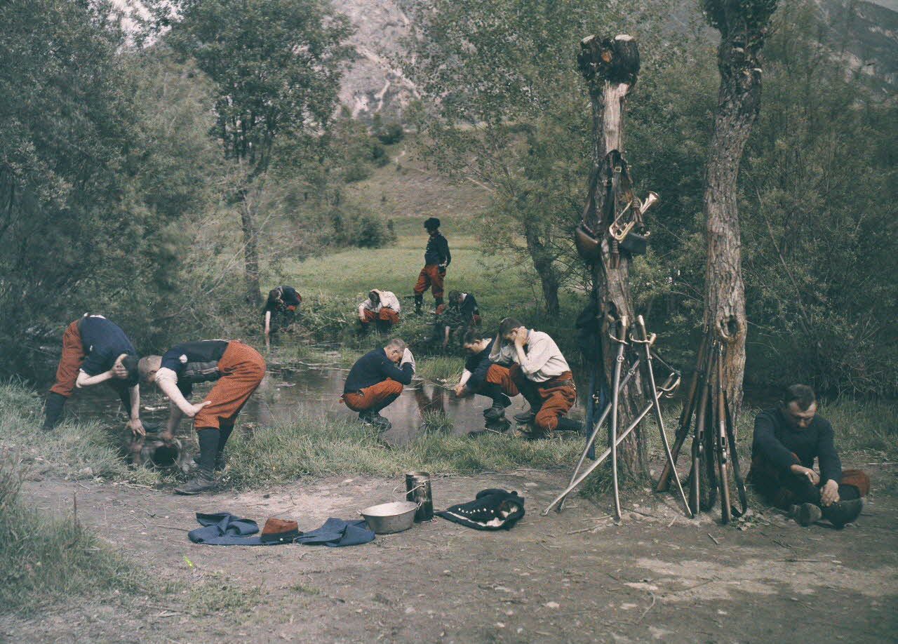 Appartenant au 14e corps d’armée (Lyon), ils sont stationnés dans les Alpes, alpinisés et habillés réglementairement du béret ample et sombre (tarte), de la ceinture de laine bleue et de bandes molletières.