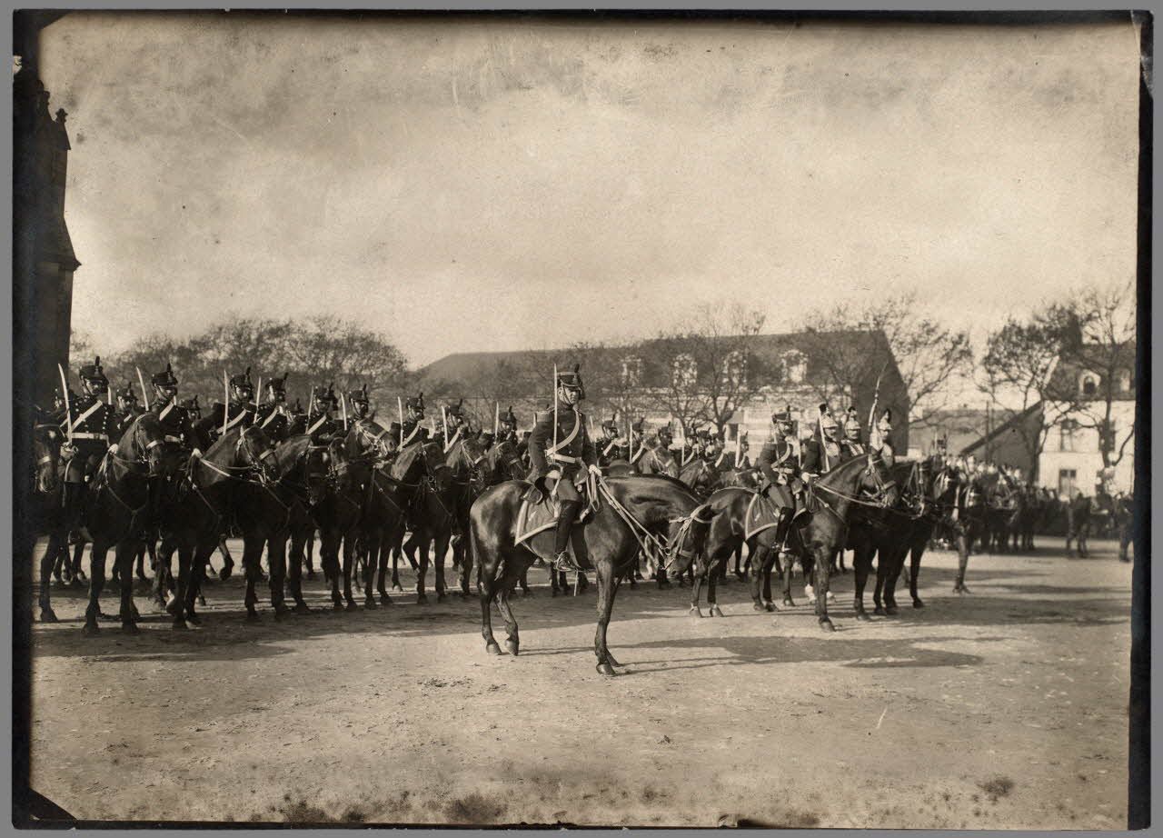 Cavalerie - Une revue des troupes dans un village (autre vue). [légende d'origine]