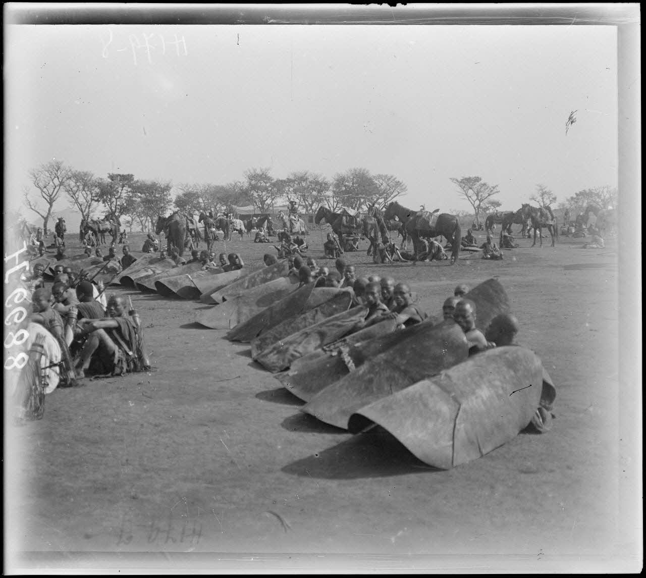 A N'Gaoundéré (plaques 6682 à 6698) le sultan Ardo Issa Maigari se rend au poste militaire avec ses cavaliers, ses lanciers et ses archers, qui patientent assis sur l'esplanade. Divers convois passent par le poste, transportant des marchandises et des ustensiles de cuisine).