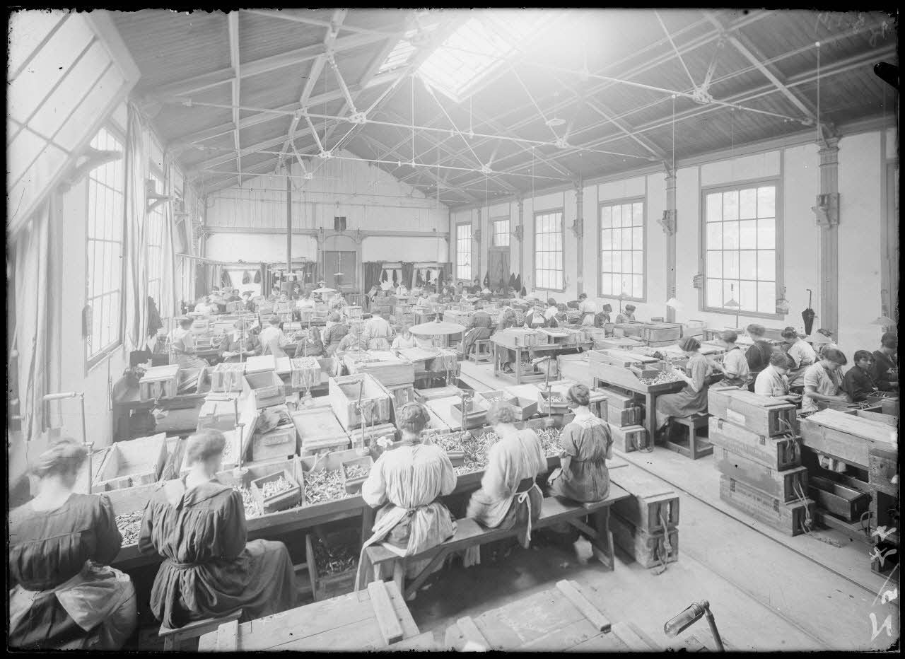 Société Eclairages électriques de Suresnes. Atelier des gaines. Contrôle des pièces finies.