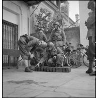 Chargement de caisses de munitions d'un canon de…