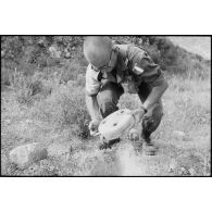 Mine antichar TMA-3 à demi-dégagée de sa cache sur…
