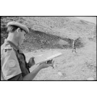 Un lieutenant du bataillon français de la FINUL (Force intérimaire des Nations unies) procède au…
