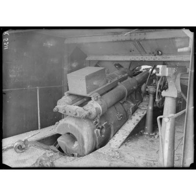 S.O. Ostende. Belgique. Défenses côtières allemandes. Batterie Jacobmessen. Une pièce, vue arrière de la culasse. [légende d'origine]