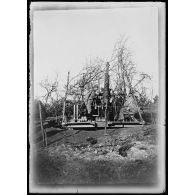 Une plateforme pour canon de 75 mm antiaérien, dans la forêt.