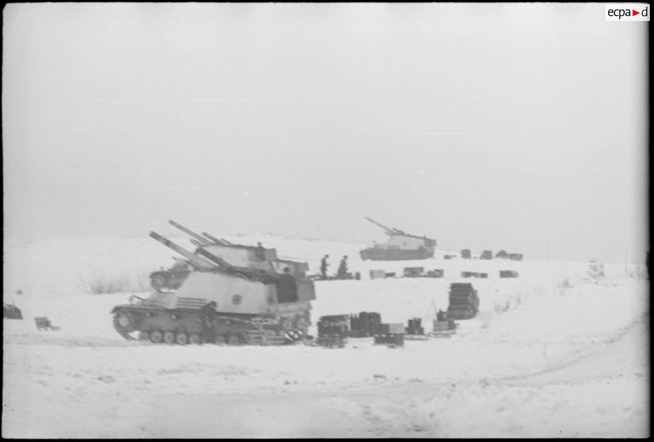 Une batterie de canons automoteurs Sd.kfz.165 Hummel.