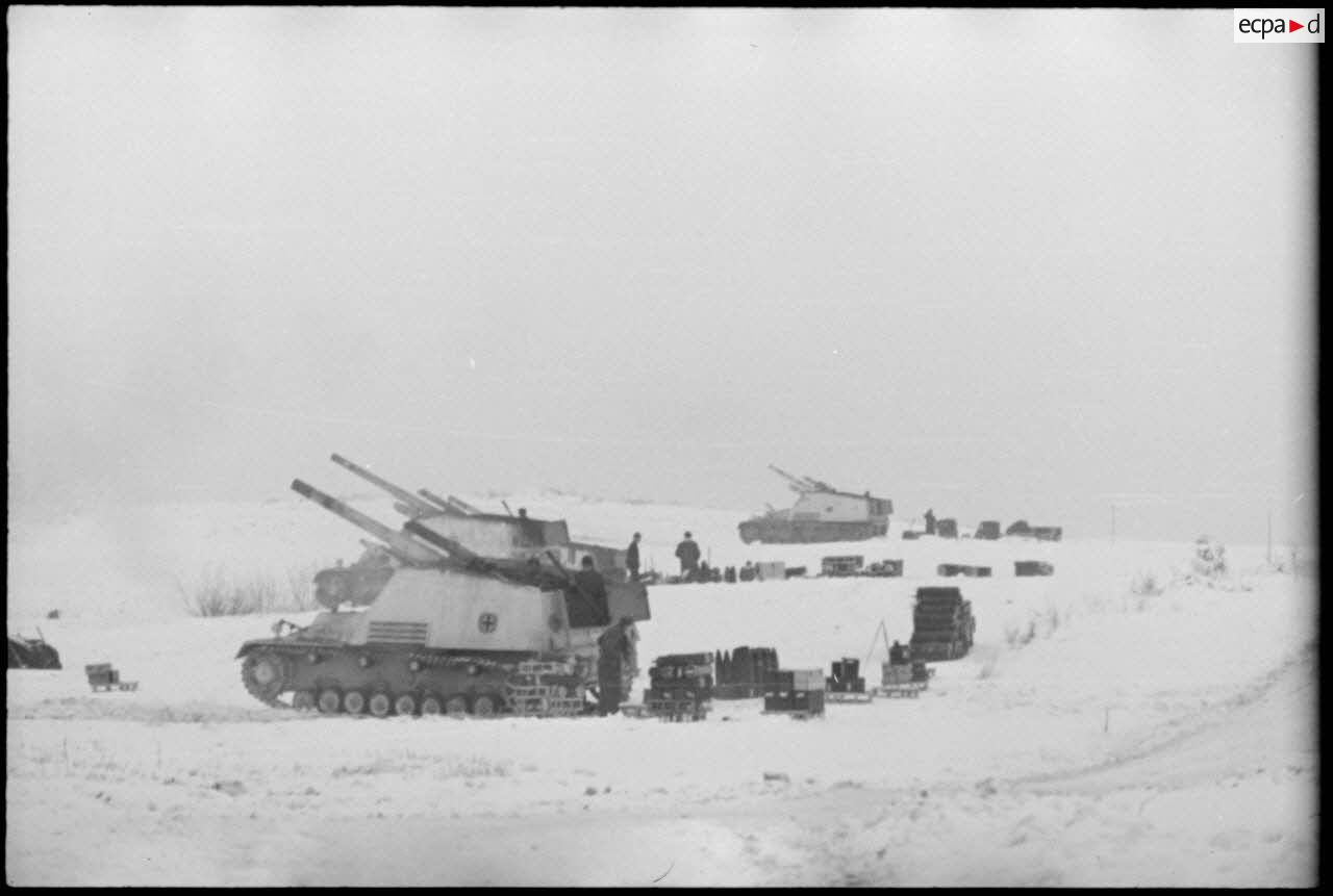 Une batterie de canons automoteurs Sd.kfz.165 Hummel.