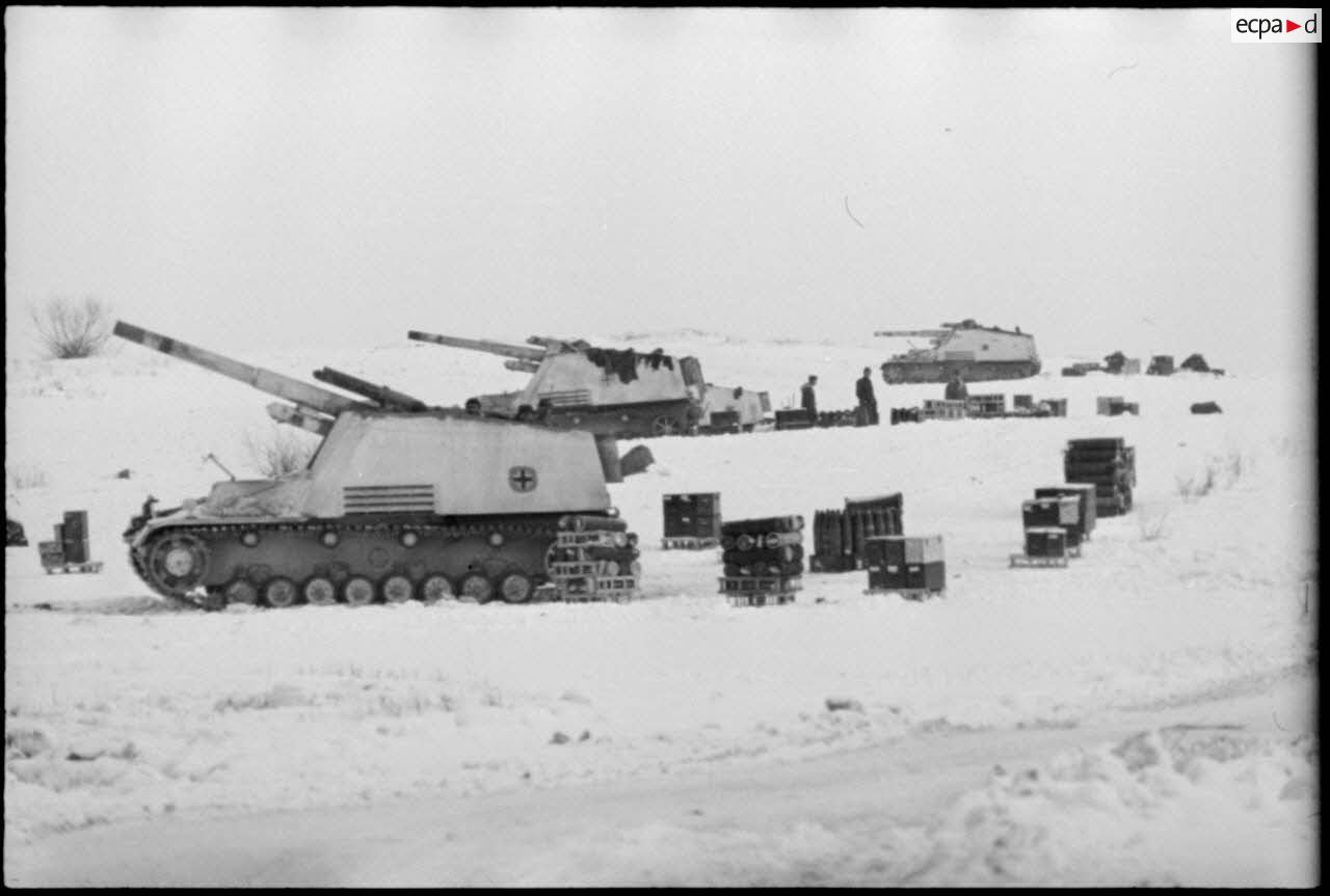 Une batterie de canons automoteurs Sd.kfz.165 Hummel.