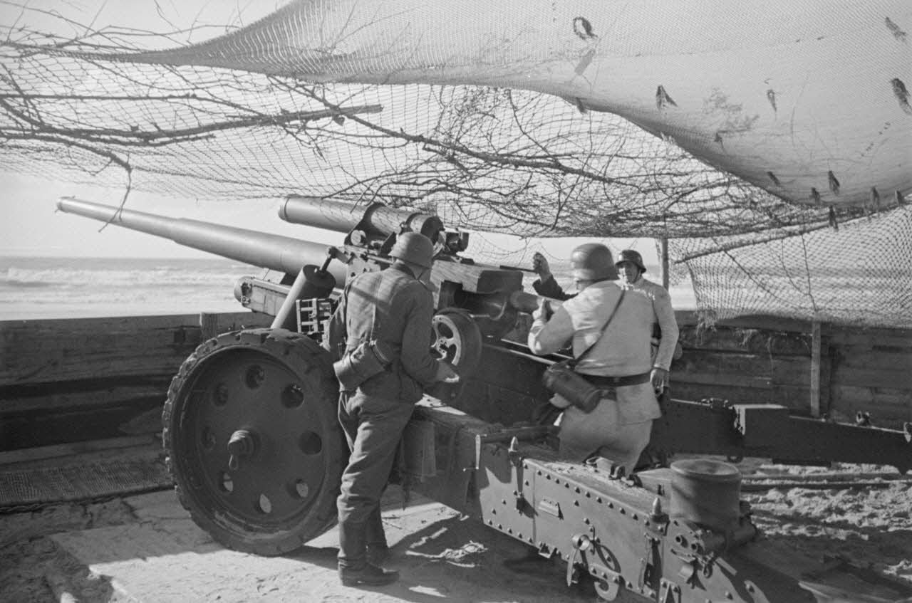 Le phare de la Courbe est utilisé par l'artillerie allemande comme un poste d'observation et comme un poste de direction de tir pour une batterie positionnée non loin du phare. Les canons de 15 cm sont mis en batterie dans des encuvements et camouflés par des filets. Un marin allemand discute avec un marin italien de la "Regia Marina".