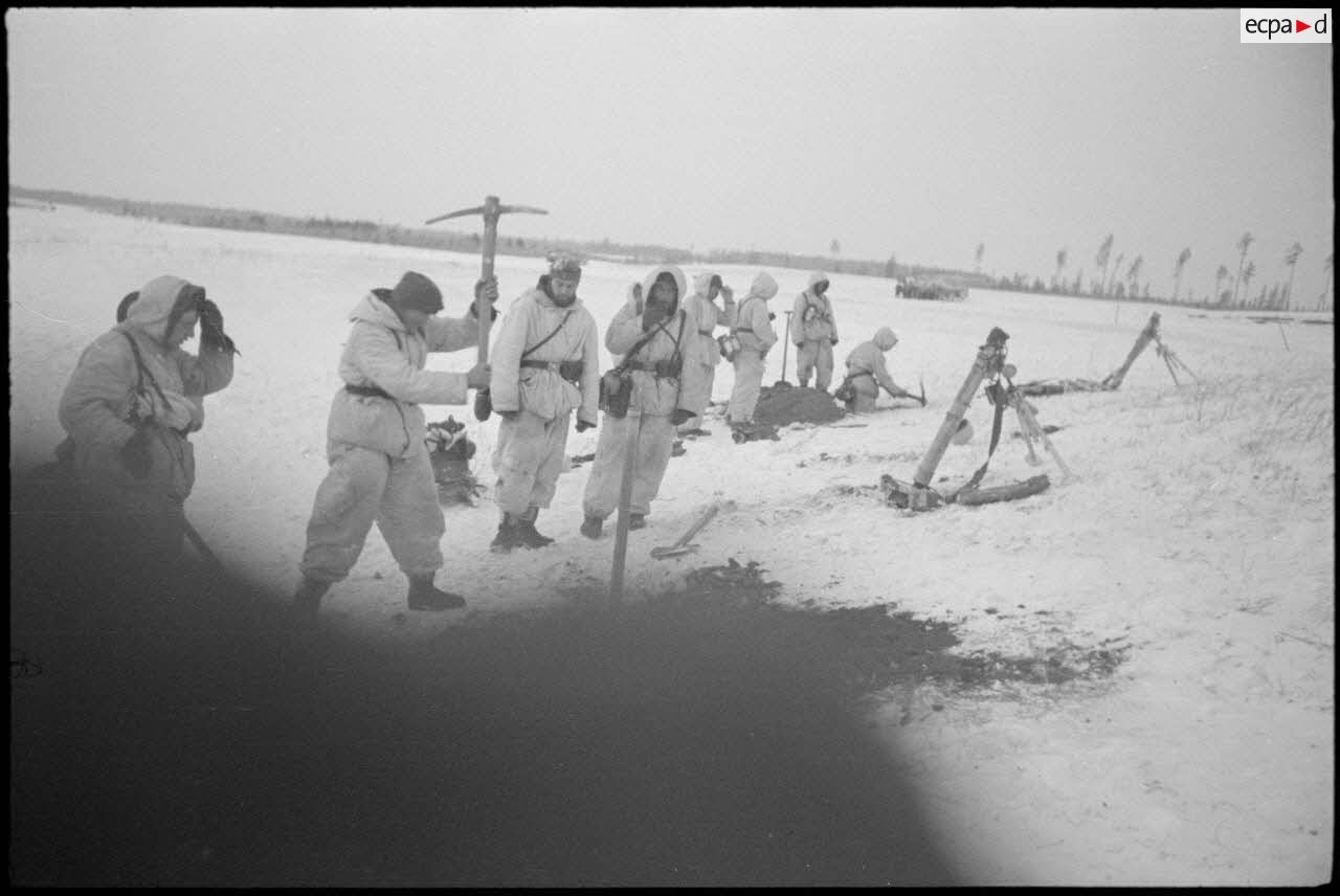 Avant un assaut, alors que les servants d'une batterie de mortiers installent une position, les équipages de Nashorn du schwere Panzerjäger-Abteilung 519 patientent à l'abri d'une meule de foin. Au sein d'un véhicule de commandement de l'Abteilung 519, des officiers étudient les plans de l'attaque. Des fantassins discutent et un tankiste de l'Abteilung 519, on reconnaît les pattes de col du tankiste. A proximité d'une isba, le reporter photographie un poste émetteur installé sur un traîneau et une femme. L'équipage du Nashorn (Sd.kfz.164) baptisé "Berlin" s'entretient avec le lieutenant de réserve (Oberleutnant der Reserve) Stehler (PK697 F955 L22 et L23). Un semi-chenillé sanitaire (Sd.Kfz.251/8) progresse sur une route. Un canon antichar de 7,5 cm Pak 40. A l'intérieur d'une isba, le lieutenant (Oberleutnant) Albert Ernst, commandant la 1ère compagnie du schwere Panzerjäger-Abteilung 519 est au téléphone en présence du lieutenant Stehler. Ce dernier quitte les lieux à bord d'un side-car BMW (R 75 ?).