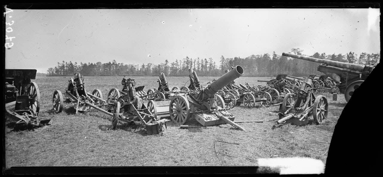 Noyon, Oise, quartier de cavalerie et canons anglais récupérés.