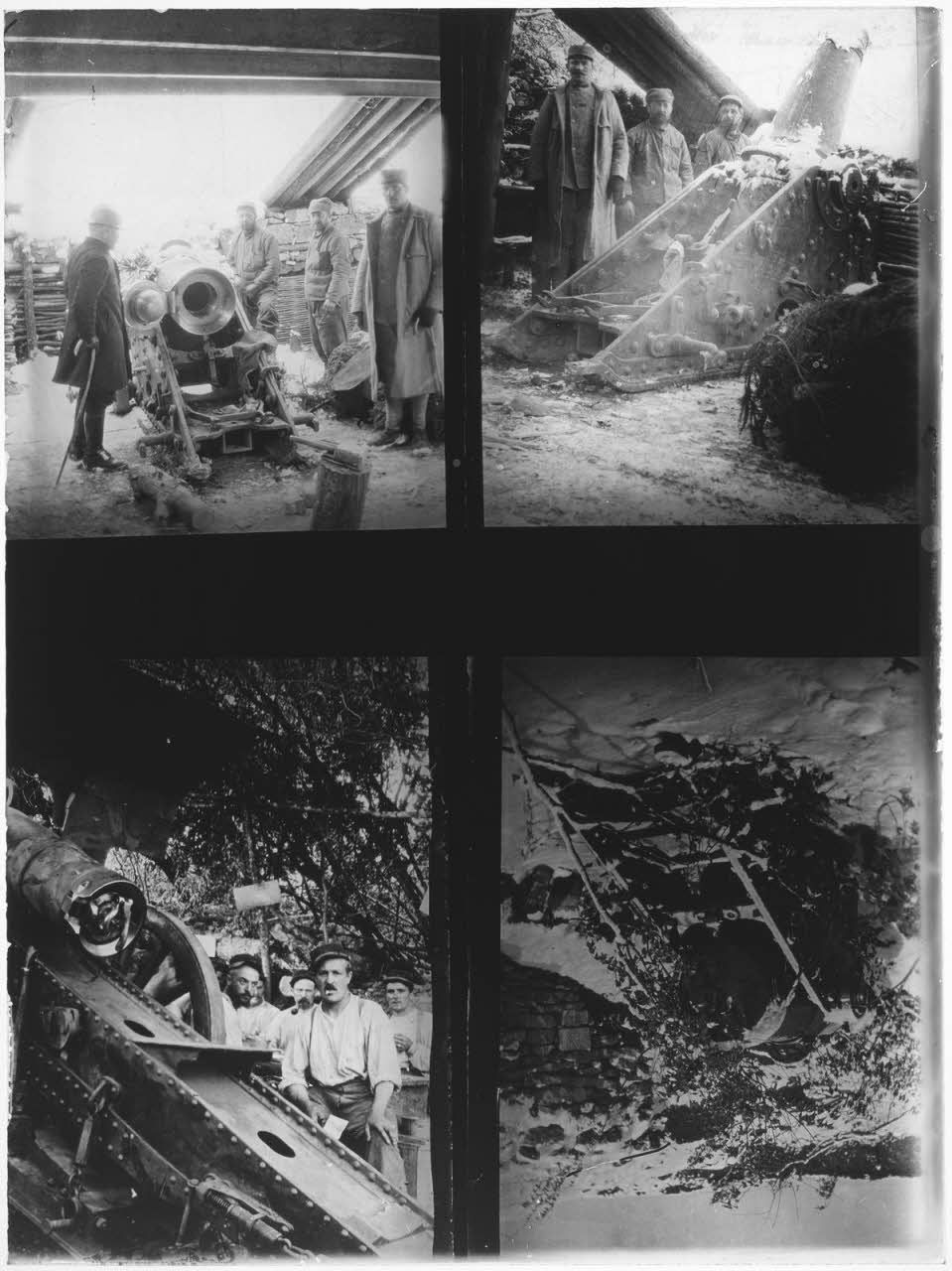[Quatre vues différentes sur la même plaque de verre : mortiers de 220 et ses servants].