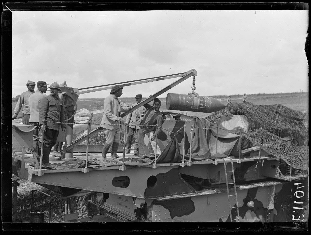 - les pièces d'artillerie françaises : des pièces d’artillerie lourde de marine sur voie ferrée, une batterie de 120 mm, un obusier de 400 mm ;