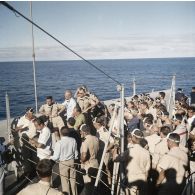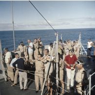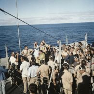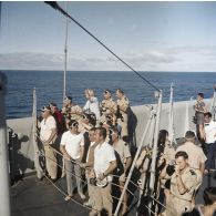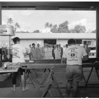 Des fantassins rassemblés devant une cuisine de…