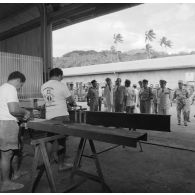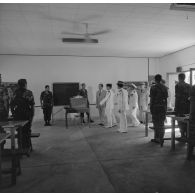 A l'intérieur de bureaux, des militaires et des…