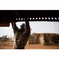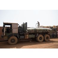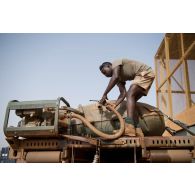 Le caporal-chef Mohamed remplit une citerne d'eau…