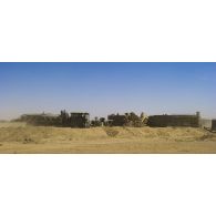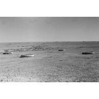 Vue du désert et de quatre bacs souples, au loin…