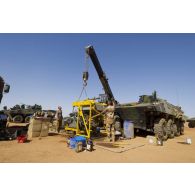 Un soldat pilote une grue automotrice LTM 1055 à…
