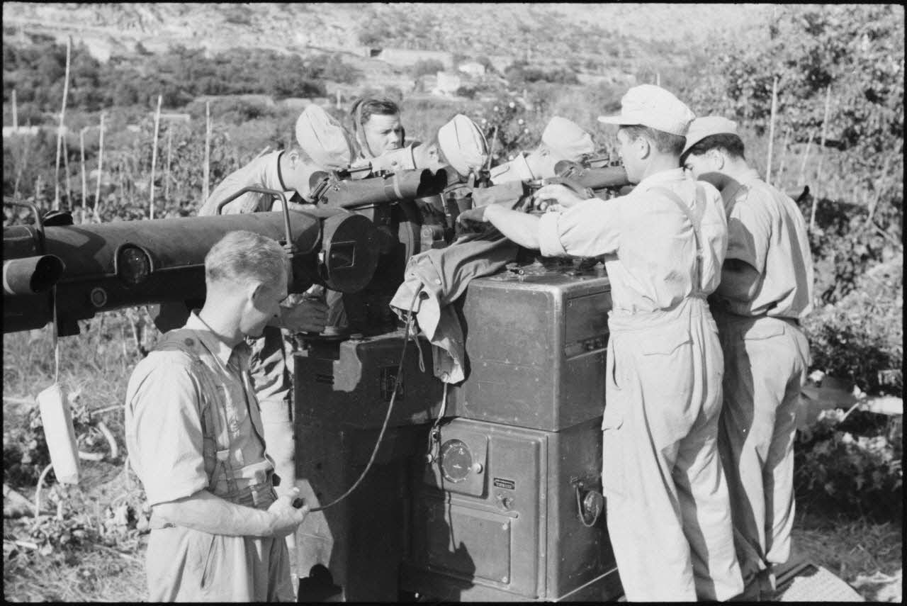 En Crète, des artilleurs de la 3e batterie du I.FlaK-Regiment.23 s'activent autour d'un télémètre (Kommandogerät 40).