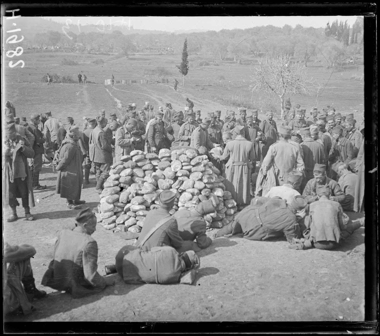 Govino. Distribution de pain aux soldats serbes. [légende d'origine]