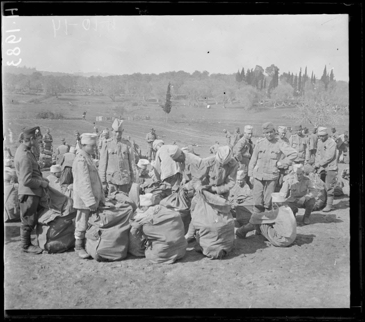 Govino. Serbes attendant le débarquement des chalands de provisions.