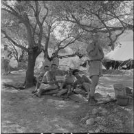 Groupe en discussion au camp d'Arue.