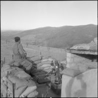 Un soldat du 1er régiment de spahis (RS) s'abrite…