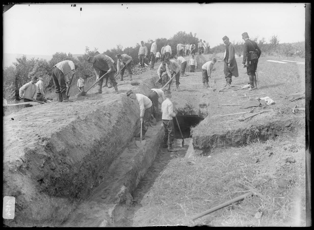 Infanterie - Manœuvres, le creusement des tranchées (autre vue). [légende d'origine]