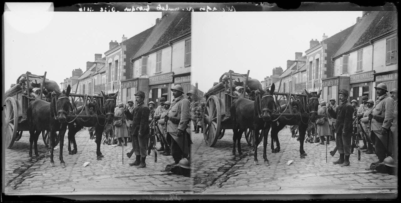 Attelage de mulets, Oise, 1916. [légende d'origine]