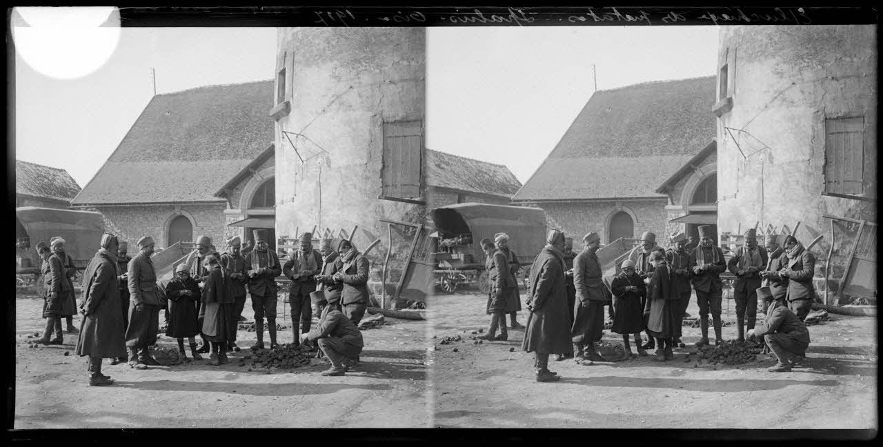 Epluchage de patates, Spahis, Oise, 1917. [légende d'origine]
